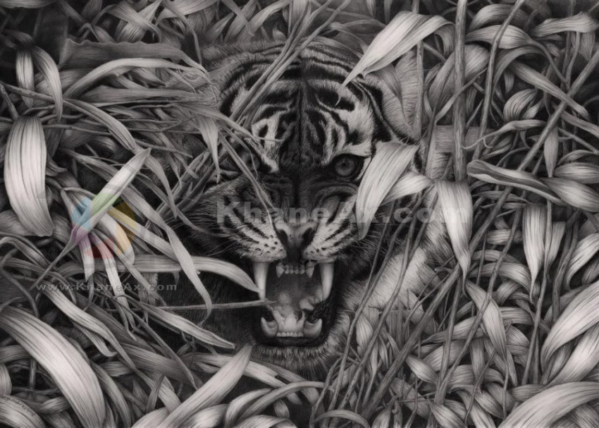 اسب سفیدی که در آب می دود با ماه کامل در پس زمینه