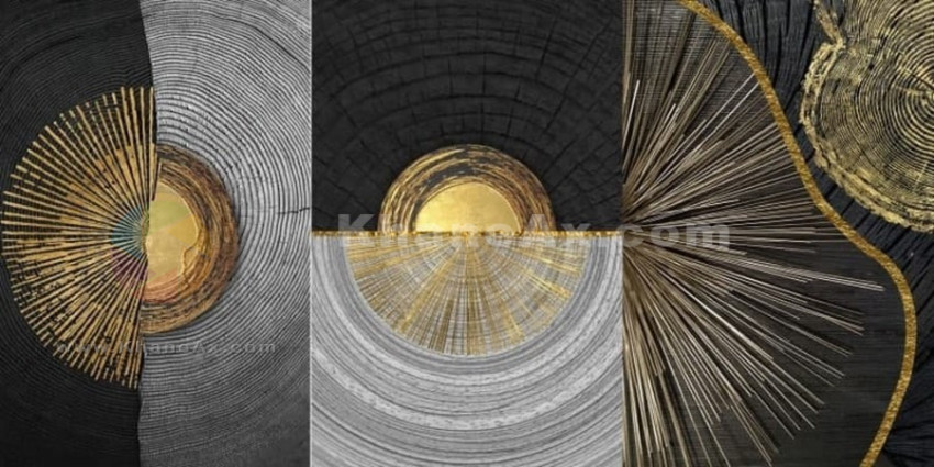 یک الگوی هندسی طلایی و نقرهای روی زمینه سیاه