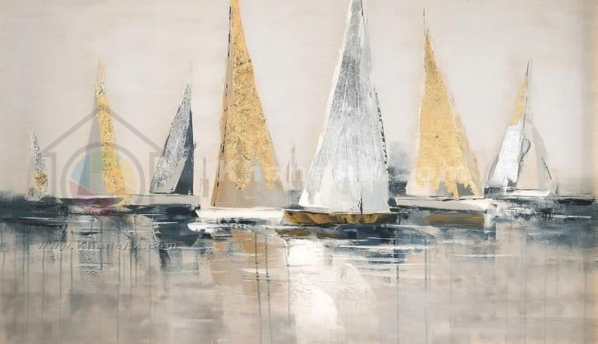 نقاشی انتزاعی طلایی و آبی