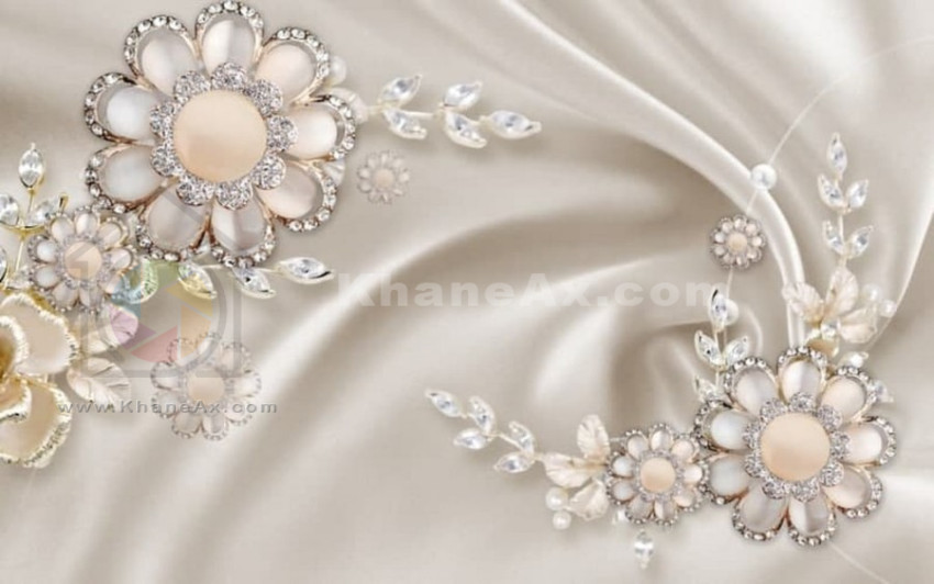 یک گل سفید و طلایی با الماس روی پسزمینه