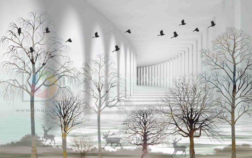 درختان شفاف بدون آب و هوا. نقاشی مات