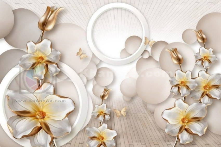یک کمد سفید با کاغذ دیواری طلایی و نقرهای