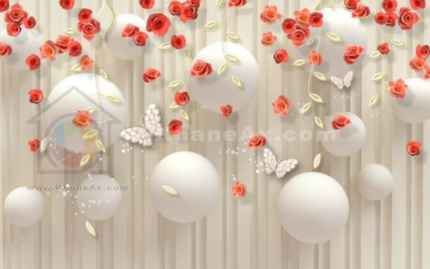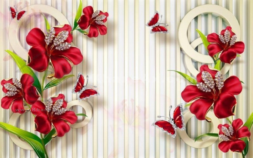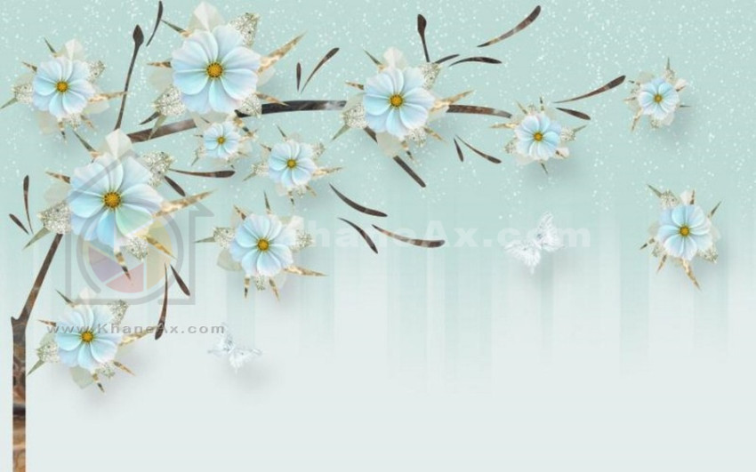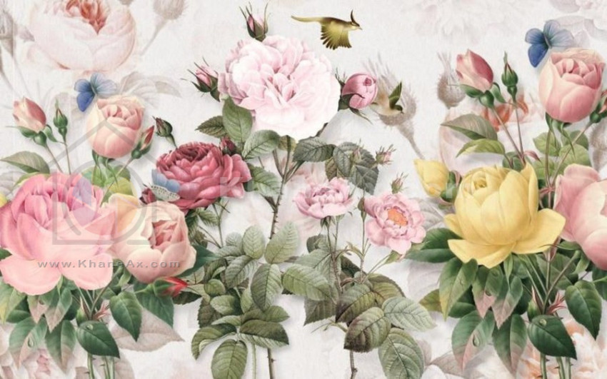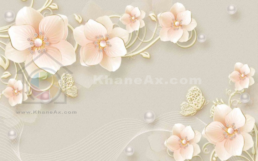 گلهای صورتی با پروانهها روی پسزمینه سفید