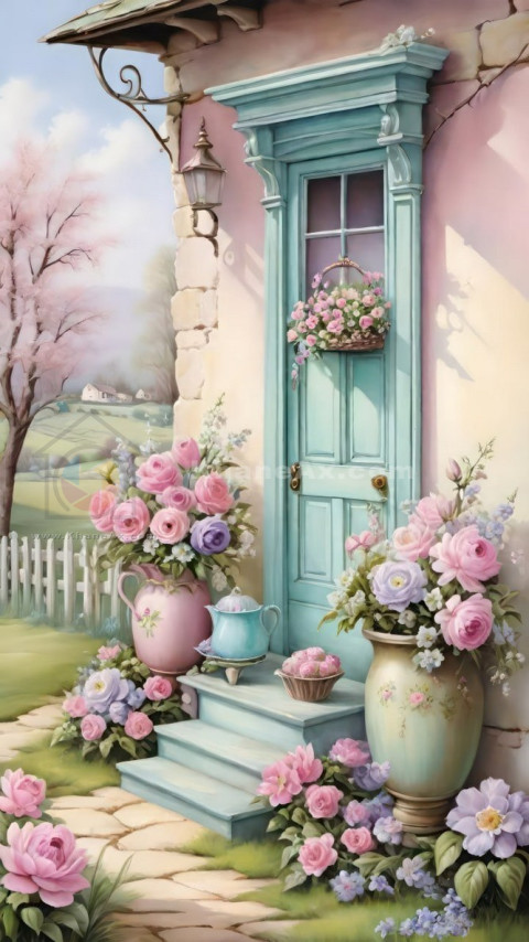 dreamy royal garden flowery chinoiserie fairy tale style painted backdrop