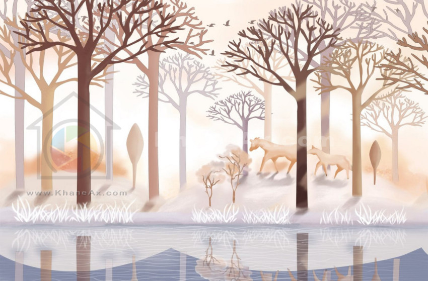 کاغذ دیواری با الگوی هندسی و طرح برگ سبز